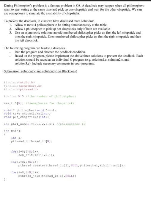 There is a bowl of rice for each of the philosophers and 5 chopsticks. Write a c program to solve dining philosophers problem dining philosophers problem is a classic synchronization problem a problem introduced by dijkstra concerning resource allocation between processes. It is the dining philosophers problem. We follow above solution to avoid dead lock condition.